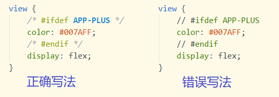 // 注释、css 使用/* 注释 */、vue/nvue/uvue 模板里使用<!-- 注释 -->;条件编译