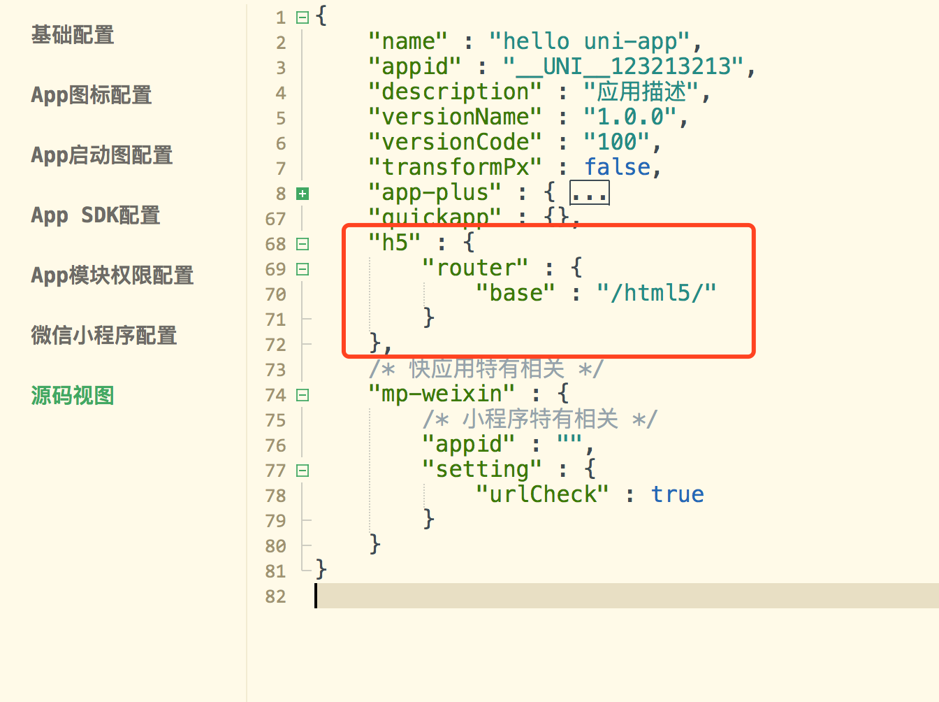 www.xxx.com/html5,在manifest.json文件内编辑 h5 节点,router下增加base属性为html5: