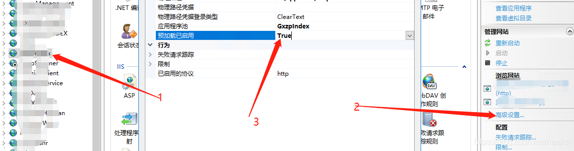 上面删除部分是我原先介绍的一种方法,没有做过全面的测试就搬上来,最近发现它同样会停掉,特地来说明一下,希望大家不要走弯路,这边我再介绍另外一个方案,就是通过配置 IIS 来实现预加载,即在资源被回收的情况下,通过一个链接来唤醒自身,这样首次访问的时候不会觉得卡顿,并且我们被回收掉的定时任务又会重新的启动起来,一举两得,具体的配置方法如下: