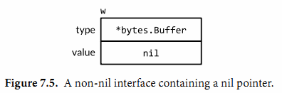 b, ok := w.(*bytes.Buffer) // failure: !ok, b == nil1