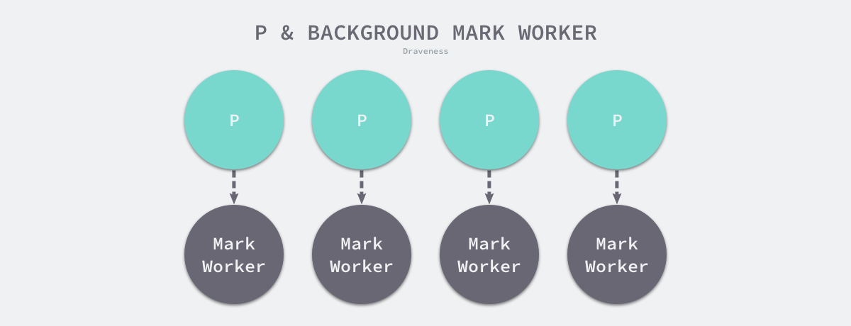 首先,并发垃圾收集器必须在合适的时间点触发垃圾收集循环,假设我们的 Go 语言程序运行在一台 4 核的物理机上,那么在垃圾收集开始后,收集器会占用 25% 计算资源在后台来扫描并标记内存中的对象: