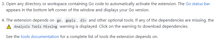 打开 Go for Visual Studio Code,查看该插件的官方介绍