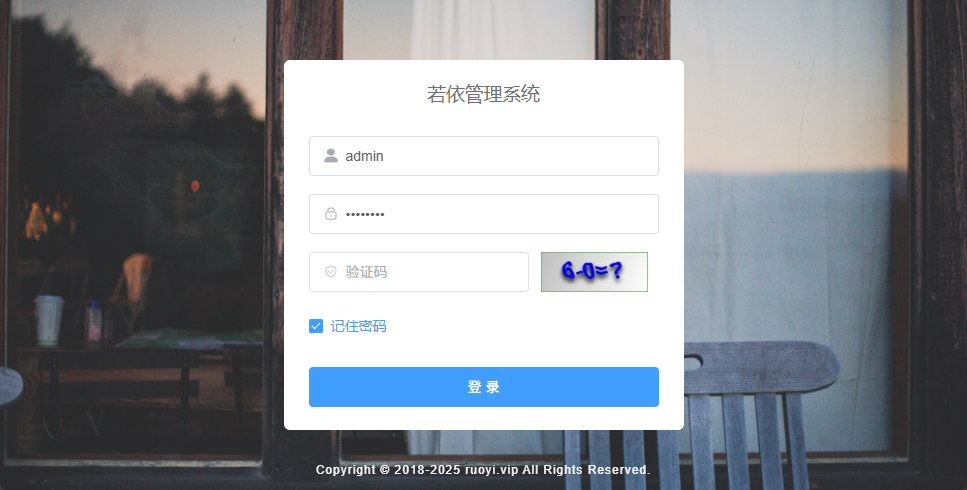 系统启动完成后,默认将呈现 RuoYi 的登录界面:
