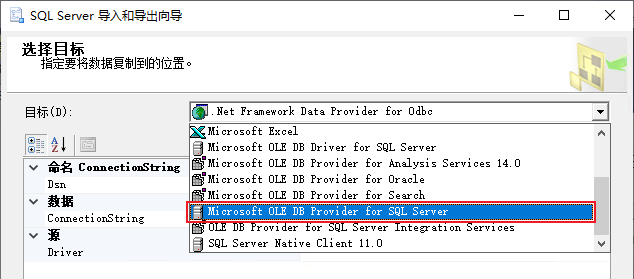 目标选择 “Microsoft OLE DB Provider for SQL Server”: