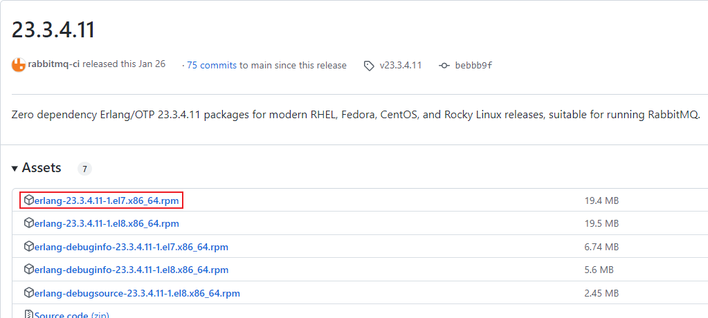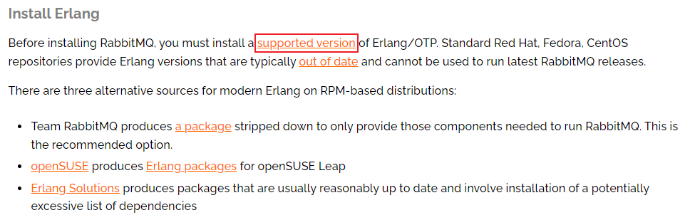 我们选择 RabbitMQ 最小依赖版本的 Erlang 进行安装,目前 CentOS 7 最高只支持到 Erlang 23