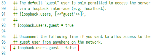 guest(密码:guest),默认情况下只允许通过回环地址登录
