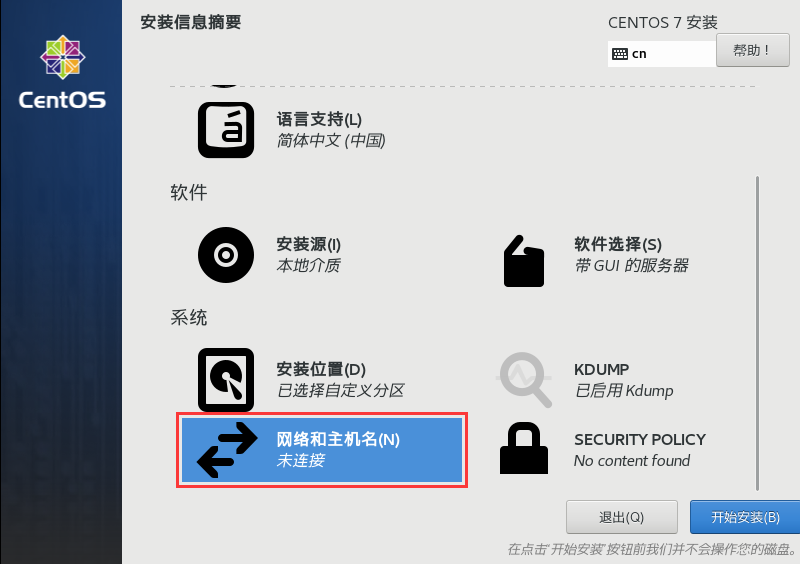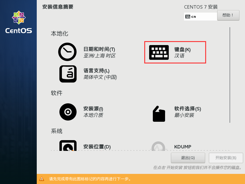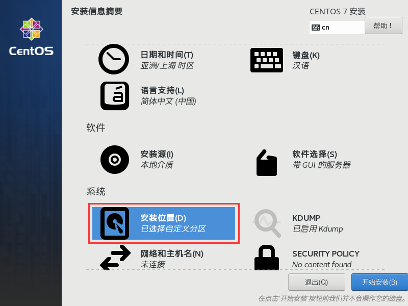 - 将光标移动到 “Install CentOS 7”