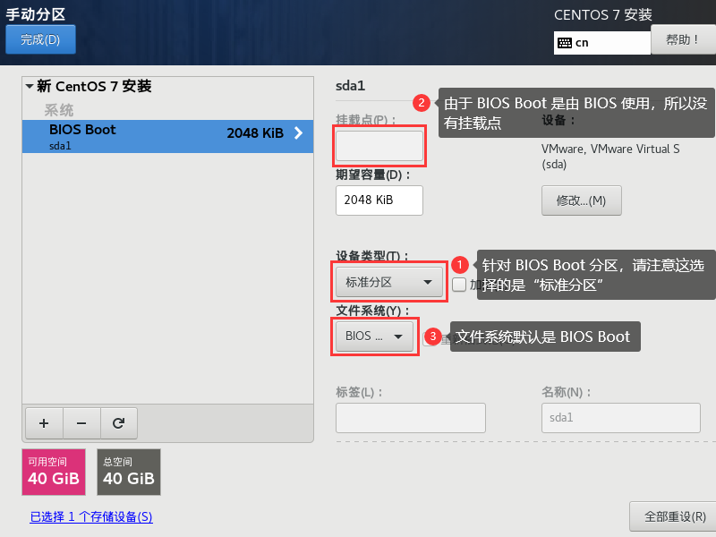 | BIOS Boot | 就是 GPT 分区表可能会使用到的项目,若你使用 MBR 分区,那就不需要这个项目了 |