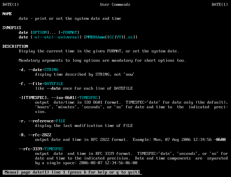 一些在 man page 里面比较常用的按键: