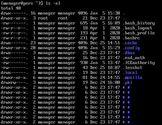 在终端界面显示的 ~ 符号代表的是 “用户的家目录”,是一个变量。例如,root 的家目录在 /root,所以 ~ 就代表 /root,而 manager 的家目录是 /home/manager。