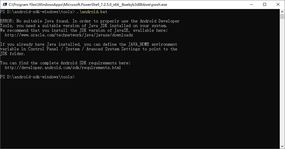 如果遇到双击 “SDK Manager.exe” 打不开、没有反应的问题,大概率是因为程序找不到 java.exe 所导致的,解决思路: