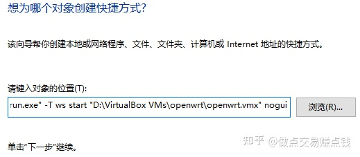 比如 "D:\Program Files (x86)\VMware\VMware Workstation\vmrun.exe" -T ws start "D:\VirtualBox VMs\openwrt\openwrt.vmx" nogui。