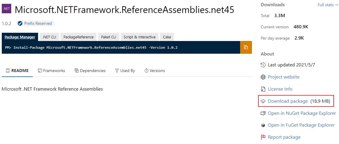 通过 Nuget 下载 .net fx 4.5 nupkg