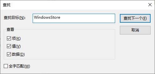 Ctrl + F查找软件名称,例如WindowsStore:
