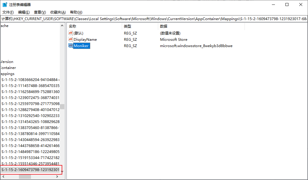 Text计算机\HKEY_CURRENT_USER\SOFTWARE\Classes\Local Settings\Software\Microsoft\Windows\CurrentVersion\AppContainer\Mappings在当前路径下